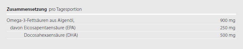 • Hochreine Omega-3-Fettsäuren EPA und DHA aus pflanzlicher Quelle